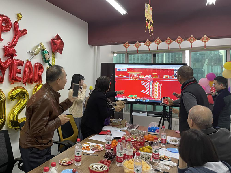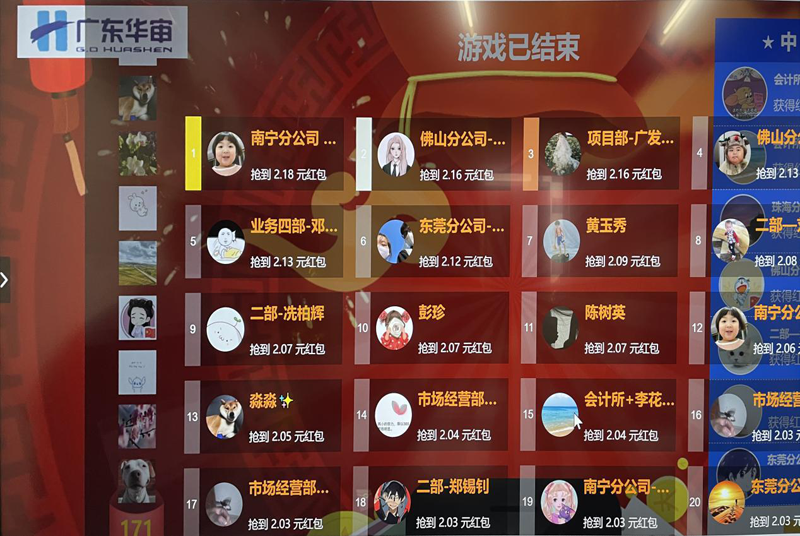 承載著新春祝福的紅包雨紛紛落在屏幕上,牛氣沖天、瘋狂數(shù)鈔票、團隊拔河等線上游戲競爭激烈。。。各個會場充滿歡聲笑語,線上線下熱鬧非凡。