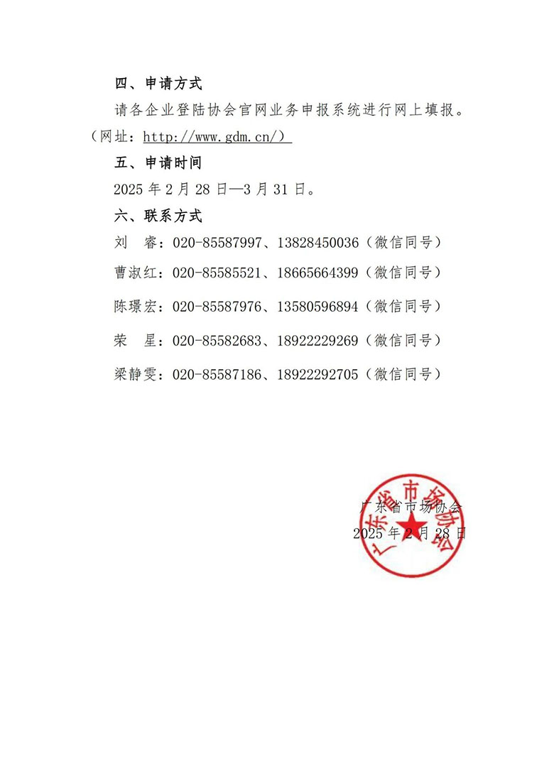 請各企業(yè)登陸協(xié)會官網(wǎng)業(yè)務(wù)申報(bào)系統(tǒng)進(jìn)行網(wǎng)上填報(bào)。(網(wǎng)址:http://www.gdm.cn/)